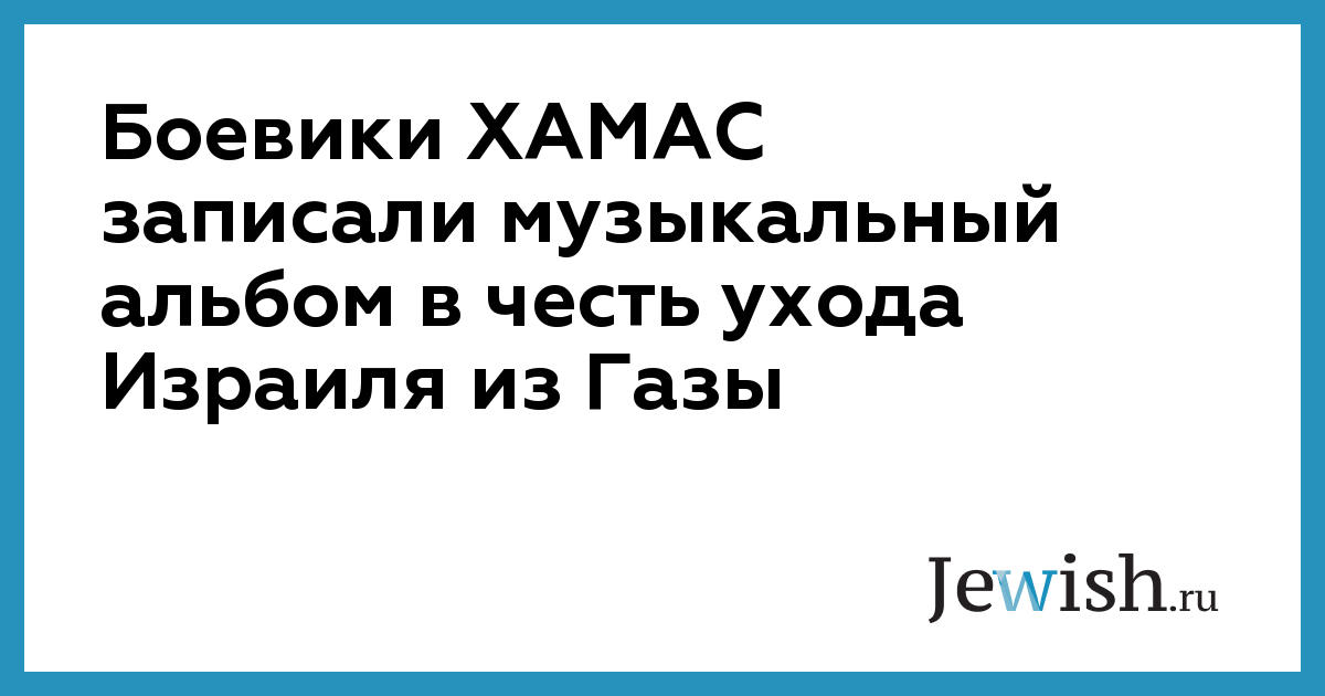 Музыкальный альбом "песней победы" выпустила палестинская террористическая организация ХАМАС. Как сообщает интернет-издание MIGnews.com, в альбом под названием "Победные новости Газы" вошли 10 песен. Выход альбома был приурочен к завершению вывода войск из сектора Газа.
