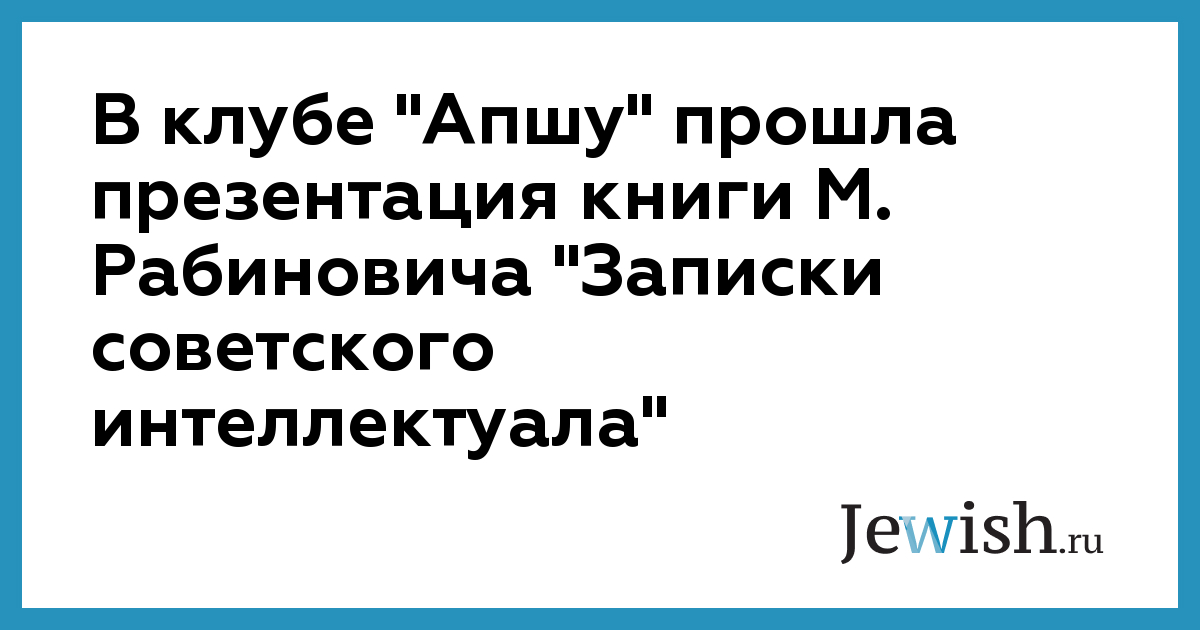 В клубе «Апшу» состоялась презентация книги воспоминаний М.Г.Рабиновича «Записки советского интеллектуала». Совместное издание Международного исследовательского центра российского и восточноевропейского еврейства и издательства «Новое литературное обозрение» вышло в свет в 2005 году,в серии «Россия в мемуарах».