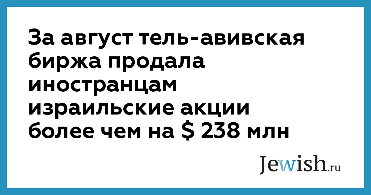 За август тель-авивская биржа продала иностранцам израильские акции более чем на $ 238 млн