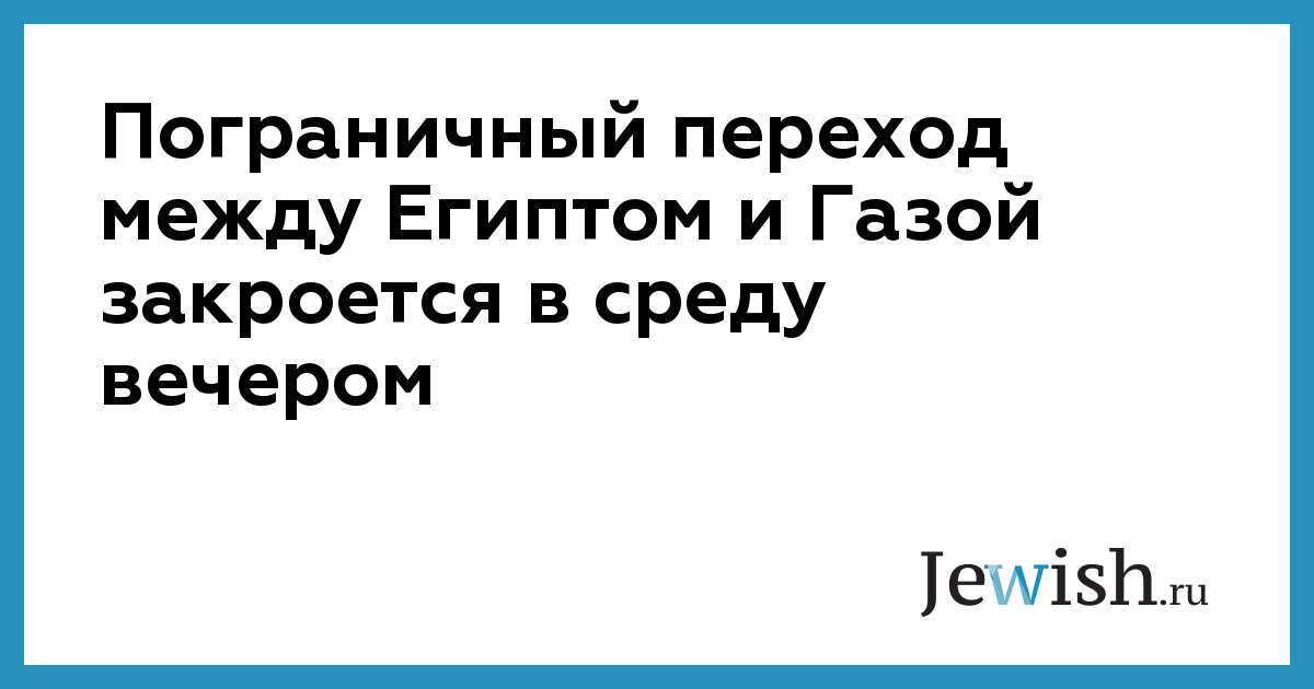 Пограничный переход между Египтом и Газой закроется в среду вечером