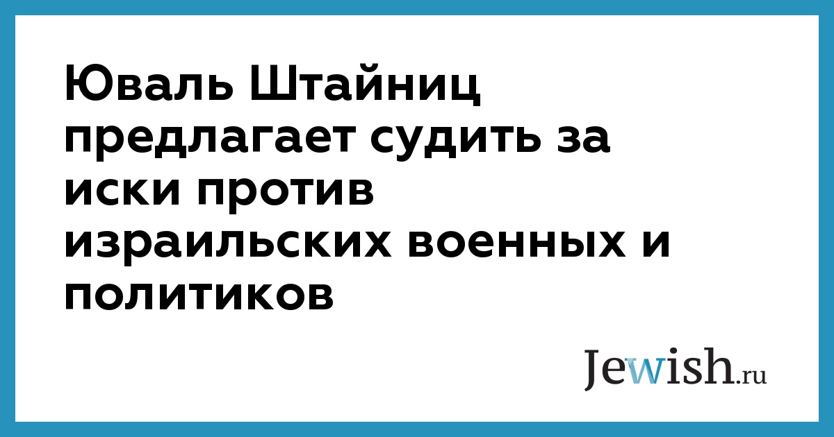 Юваль Штайниц предлагает судить за иски против израильских военных и политиков