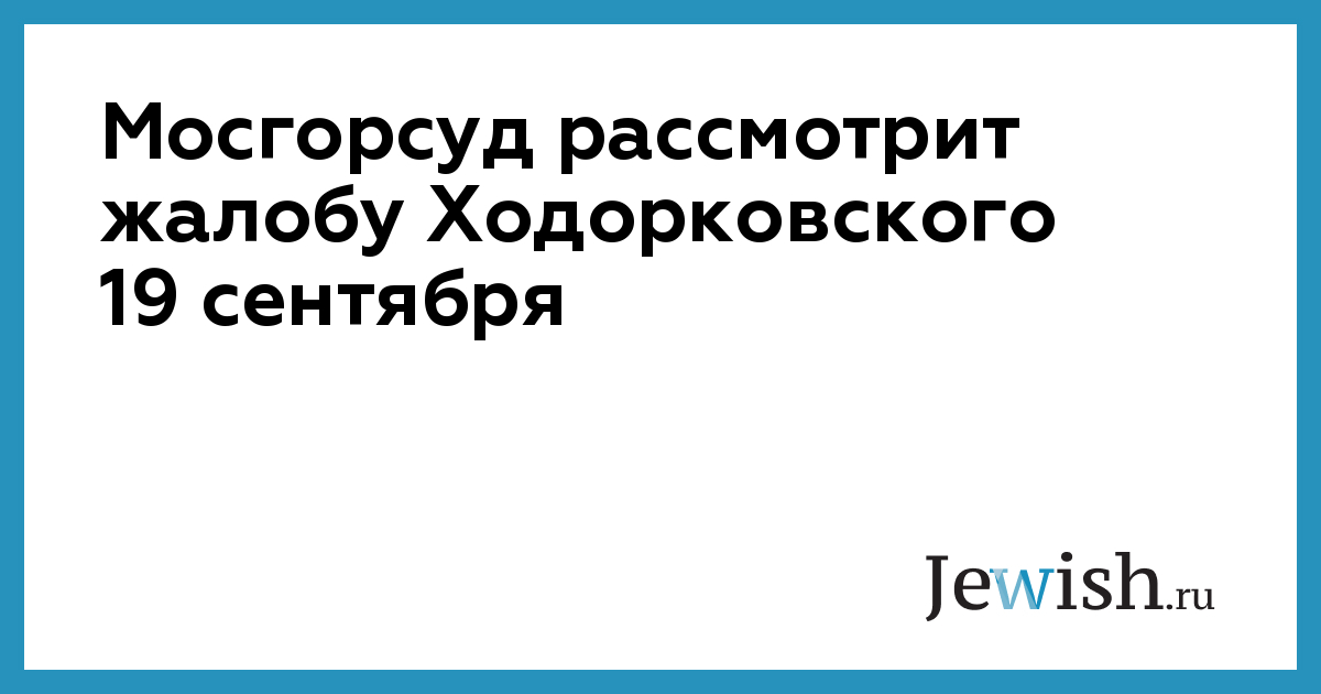 Мосгорсуд рассмотрит жалобу Ходорковского 19 сентября
