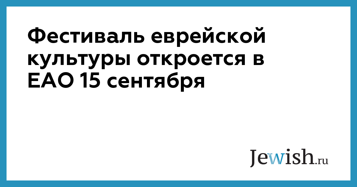 Фестиваль еврейской культуры откроется в ЕАО 15 сентября