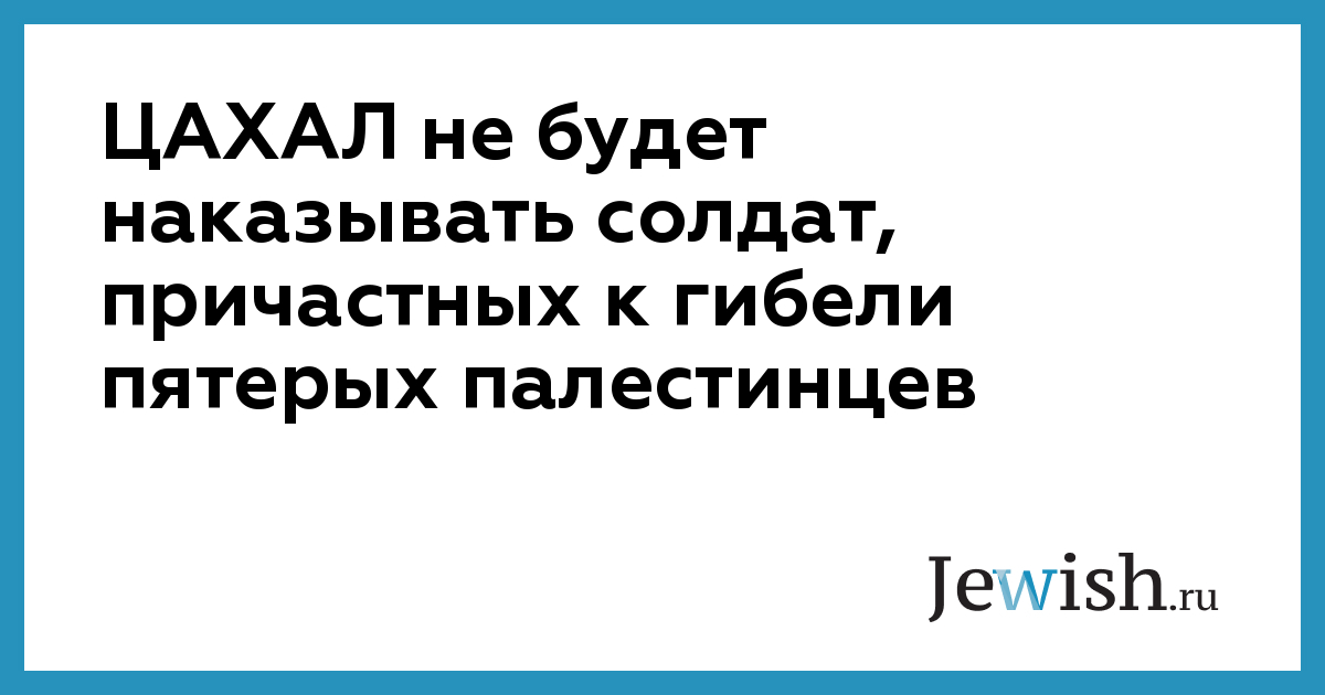 ЦАХАЛ не будет наказывать солдат, причастных к гибели пятерых палестинцев