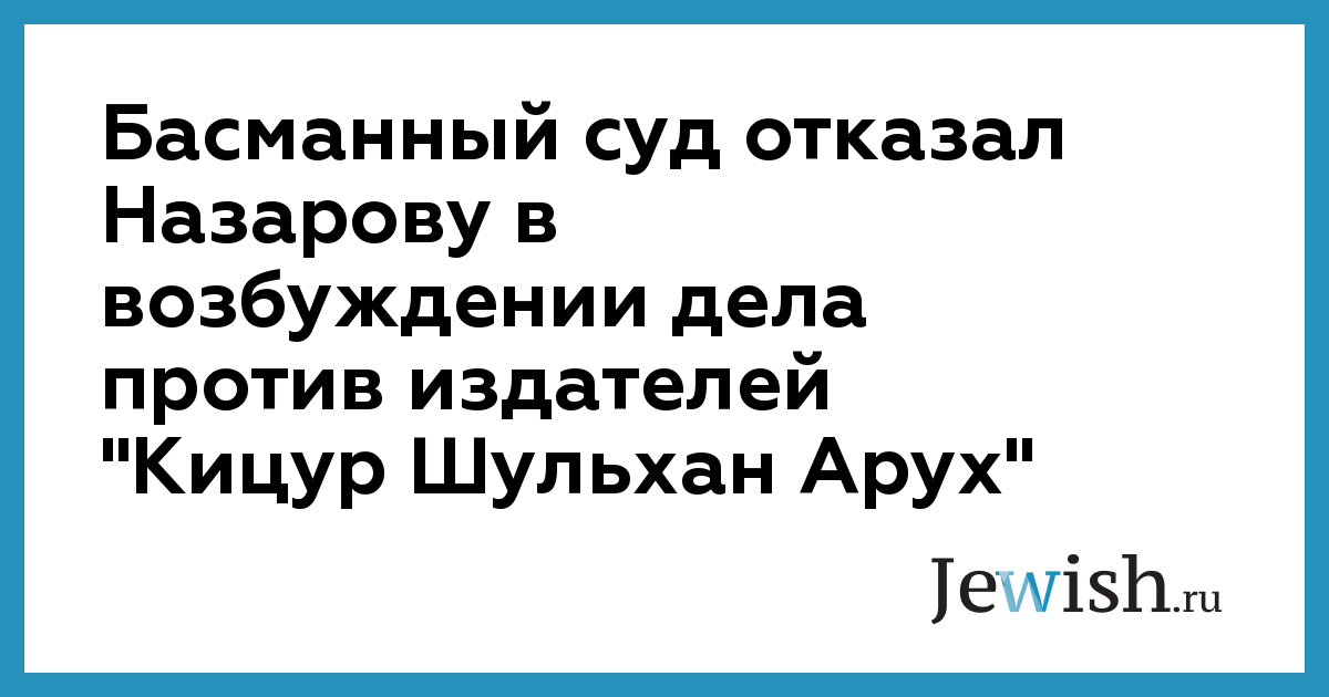 Басманный суд отказал Назарову в возбуждении дела против издателей "Кицур Шульхан Арух"