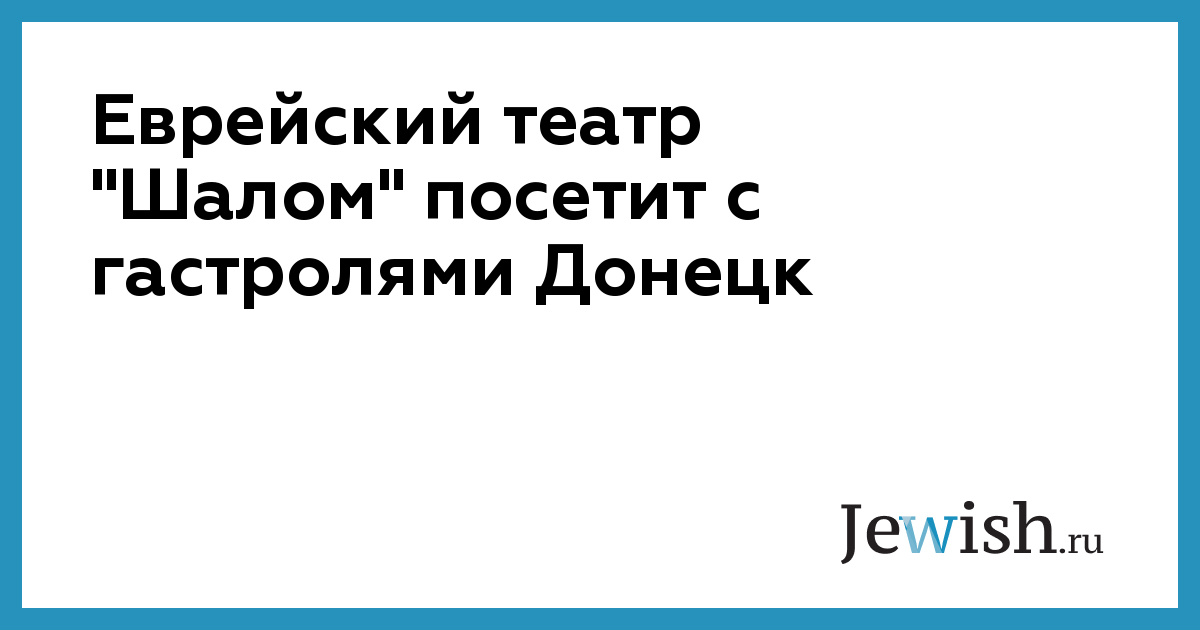 Еврейский театр "Шалом" посетит с гастролями Донецк