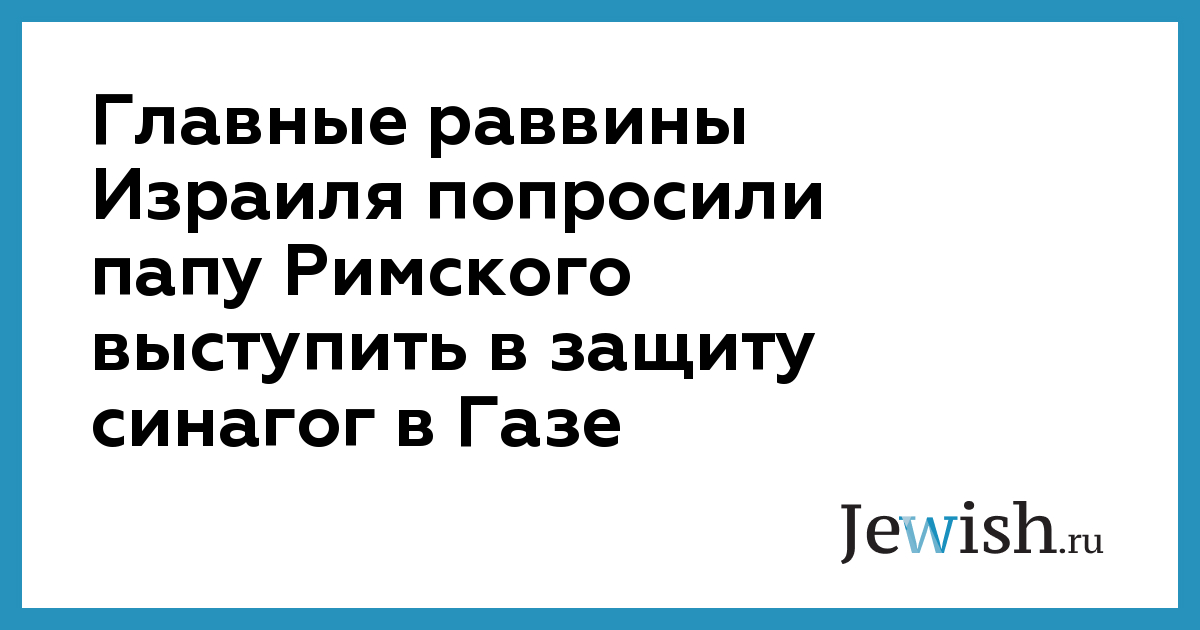 Главные раввины Израиля попросили папу Римского выступить в защиту синагог в Газе