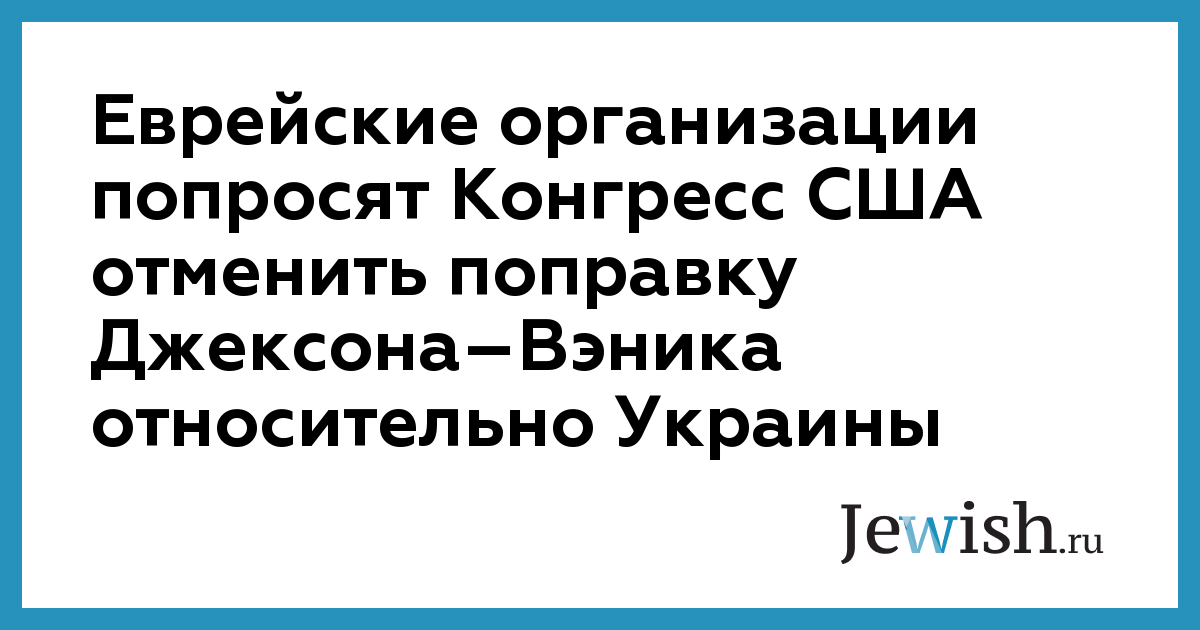 Еврейские организации попросят Конгресс США отменить поправку Джексона–Вэника относительно Украины