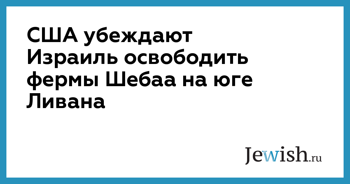 США убеждают Израиль освободить фермы Шебаа на юге Ливана