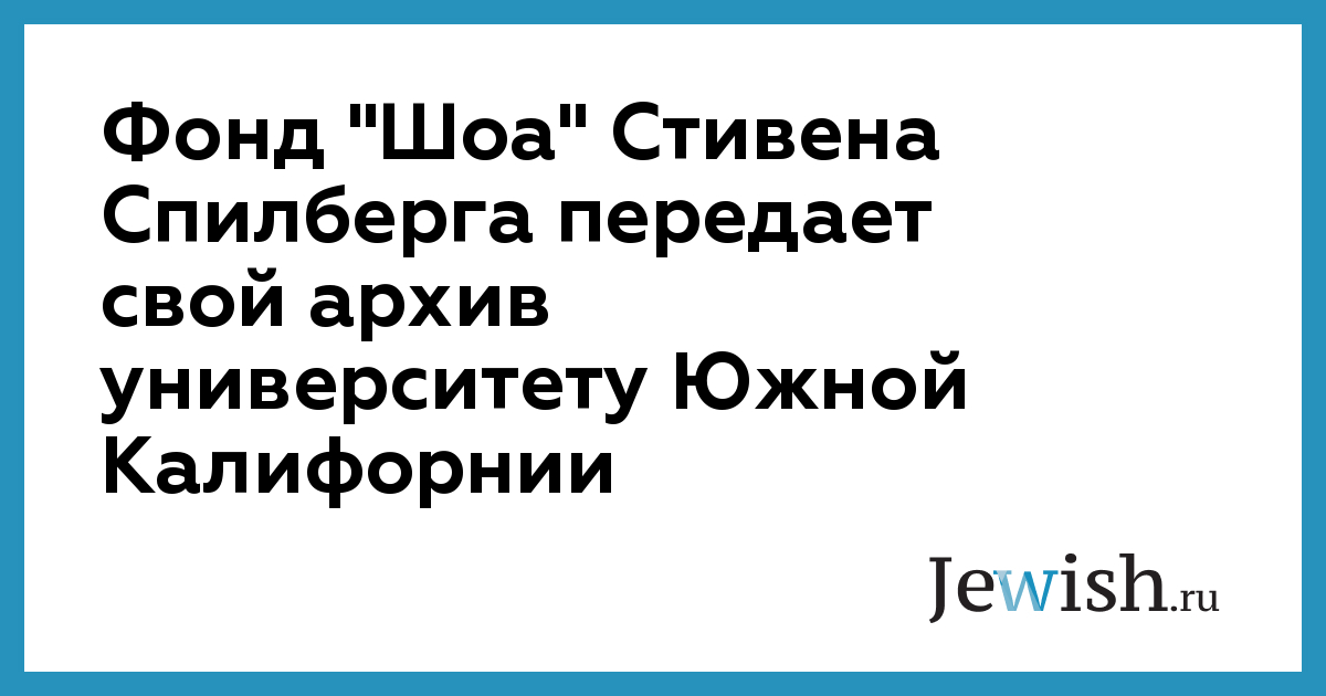 Фонд Стивена Спилберга "Шоа" ("Катастрофа", ивр.) станет частью Университета Южной Калифорнии, присоединившись к колледжу писем, искусств и наук.