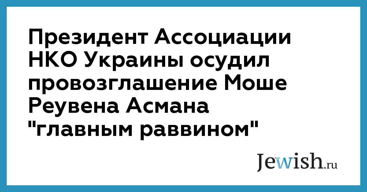 Как сообщила пресс-служба Федерации еврейских общин СНГ, президент украинской Ассоциации национально-культурных объединений Александр Фельдман осудил провозглашение Моше Асмана главным раввином Украины.