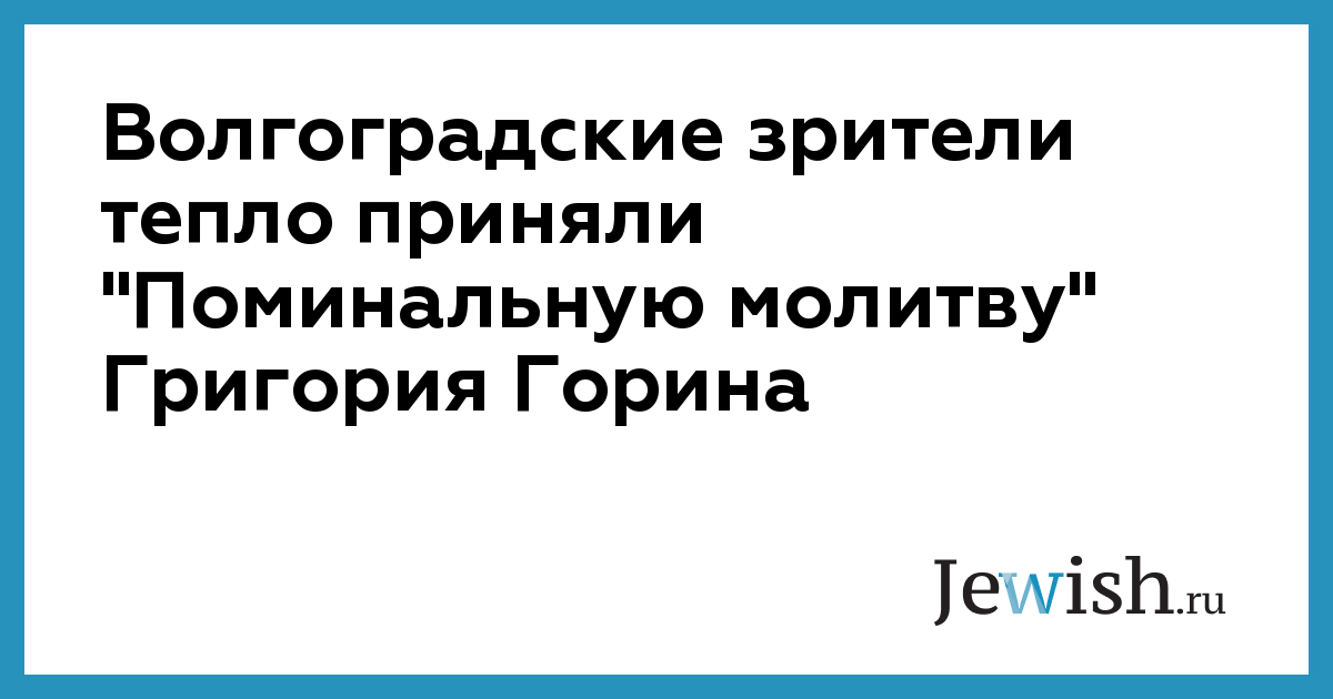 Более тридцати женщин, члены «молодежки», клуба «Посиделки» («золотой» возраст) посетили Волгоградский ТЮЗ, на чьей сцене труппа Читинского драматического театра в тот вечер играла «Поминальную молитву» Григория Горина. Великолепный текст пьесы, плюс хорошая игра актеров, музыкальное сопровождение, построенное на народной еврейской музыке, сделали свое дело – в зале не было безразличных. Зрители сопереживали, плакали, смеялись остроумию героев и забавности ситуаций. А финальная сцена под «Хаву нагилу» вызвала шквал аплодисментов и возгласы: «Браво!».