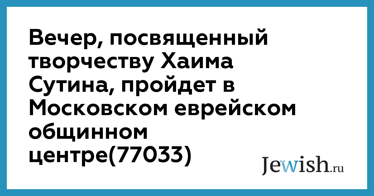 Вечер, посвященный творчеству Хаима Сутина, пройдет в Московском еврейском общинном центре(77033)
