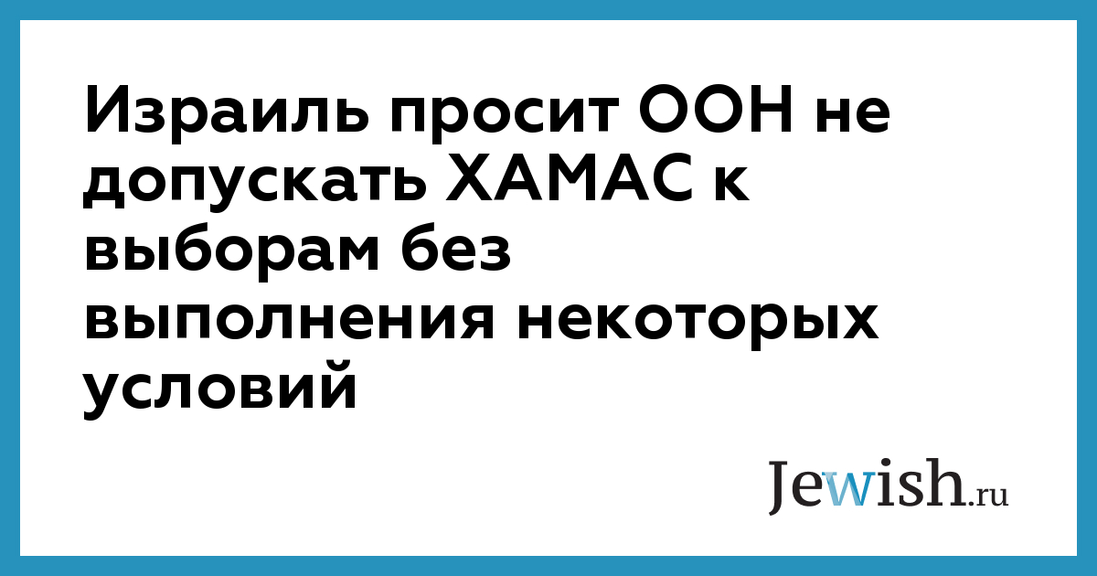 Израиль обратился к ООН и Eвросоюзу с просьбой оказать давление на палестинское руководство с тем, чтобы не допустить участия радикальной группировки ХАМАС в предстоящих выборах, пока не будут выполнены некоторые условия.