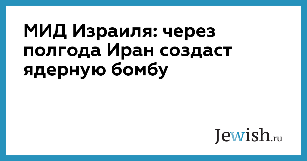 МИД Израиля: через полгода Иран создаст ядерную бомбу
