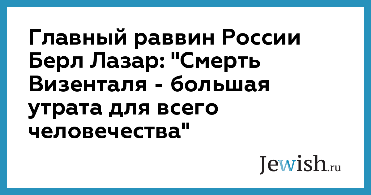 Главный раввин России Берл Лазар считает, что смерть Симона Визенталя – большая утрата не только для еврейского народа, но и для всего человечества. Об этом говорится в заявлении главного раввина России по поводу кончины известного писателя, охотника за нацистскими преступниками.