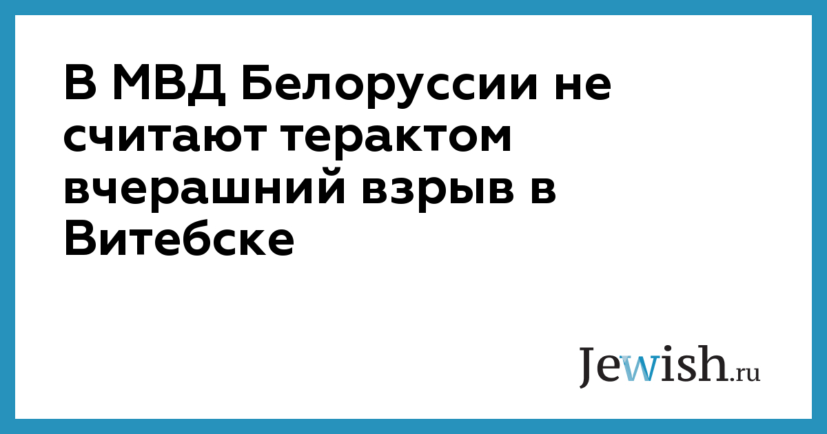 В МВД Белоруссии заявляют, что не усматривают признаков теракта во взрыве, который произошел в четверг в Витебске. "Есть основания полагать, что случившееся — хулиганская выходка или результат неосторожного обращения с имитационным взрывным устройством", — говорится в заявлении начальника Управления информации и общественных связей МВД Геннадия Клепчи.