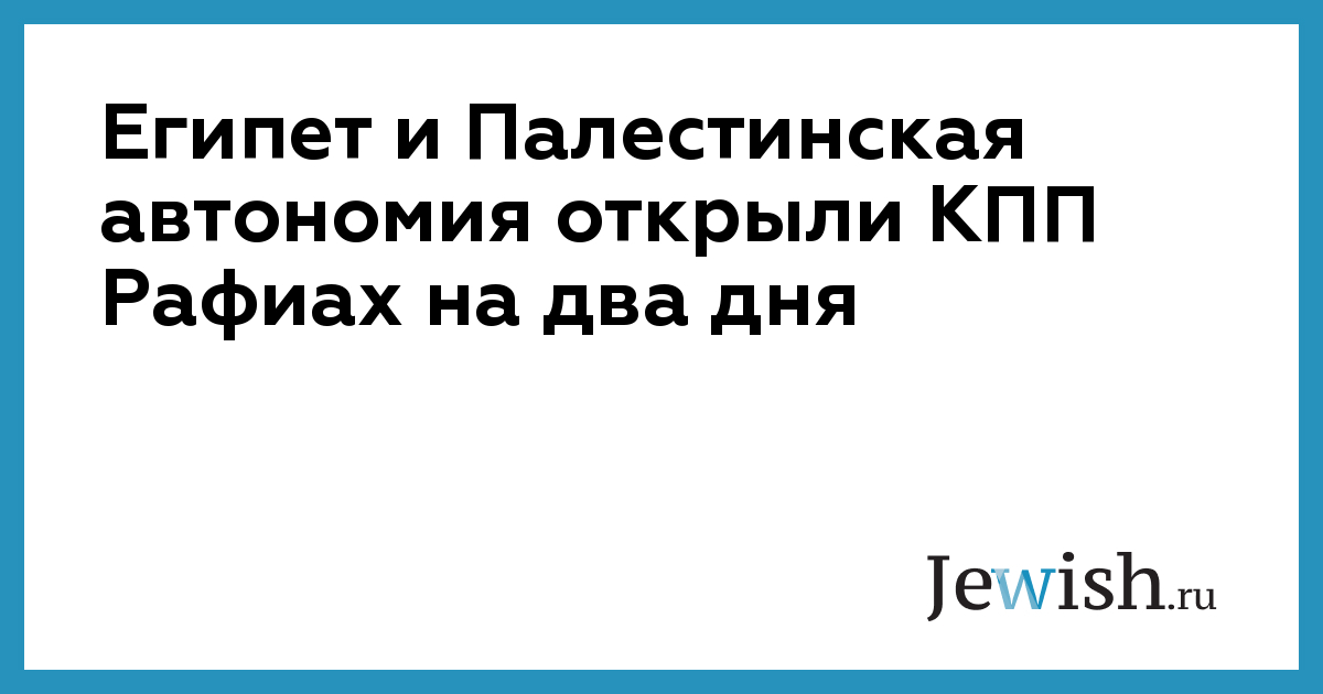 Агентство указывает, что палестинская администрация достигла согласия с израильской и египетской сторонами о временном открытии границы.
