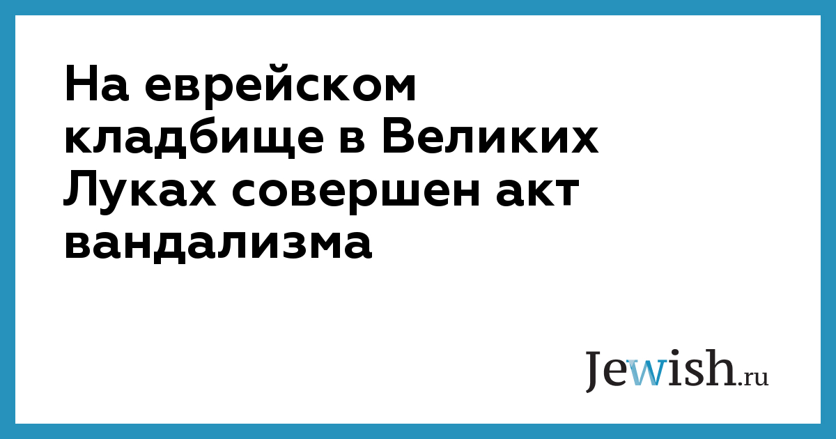 20 сентября на еврейском кладбище в Великих Луках был совершен акт вандализма — повалены пять надгробий и разбита гранитная плита на одном из них. Как сообщает Агентство еврейских новостей, представители еврейской общины города подали заявление в правоохранительные органы. Сотрудники районного отделения милиции побывали на месте происшествия и начали расследование.