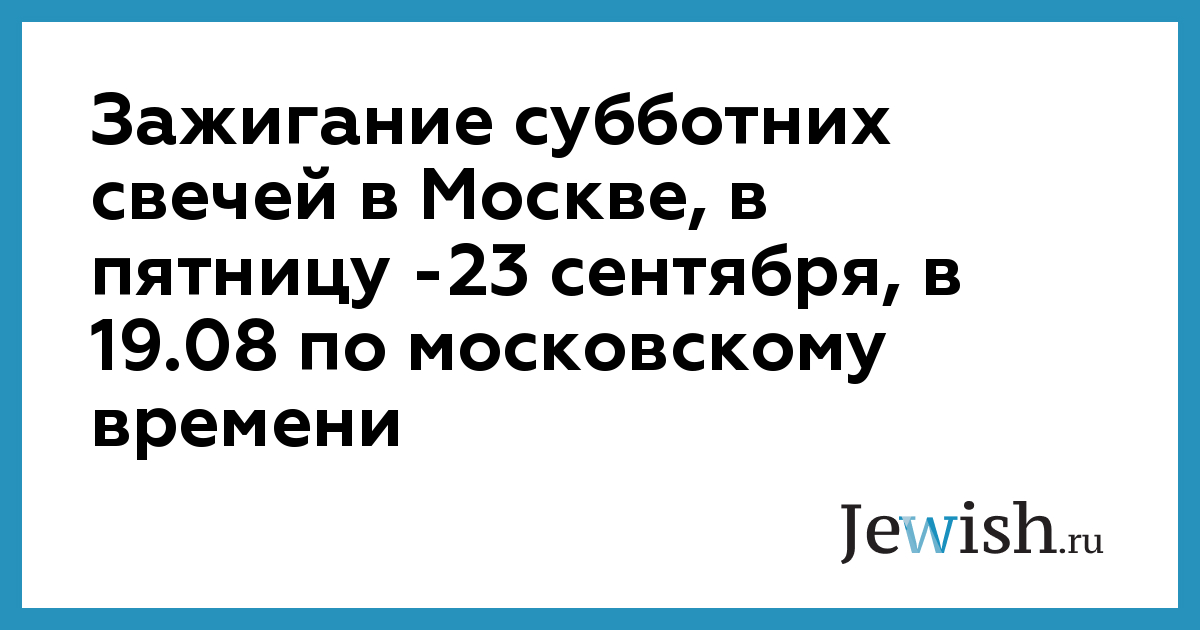 Зажигание субботних свечей в Москве, в пятницу -23 сентября, в 19.08 по московскому времени