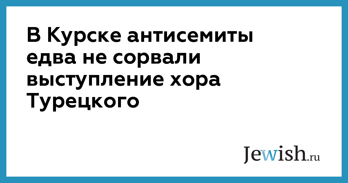 В субботу в Курске местными антисемитами едва не было сорвано выступление хора Турецкого. Накануне концерта злоумышленники разрисовали стены областного драматического театра им. Пушкина антисемитскими лозунгами. Неизвестные хулиганы звонили в театр и угрожали терактом в случае, если выступление состоится. Сейчас правоохранительные органы проводят проверку инцидента.