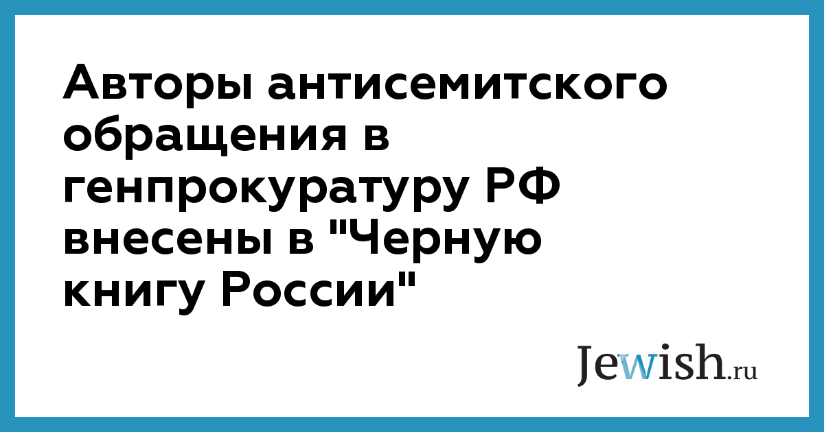 Авторы антисемитского обращения в генпрокуратуру РФ внесены в "Черную книгу России"