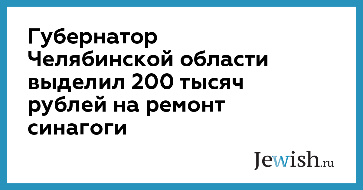 Губернатор Челябинской области выделил 200 тысяч рублей на ремонт синагоги