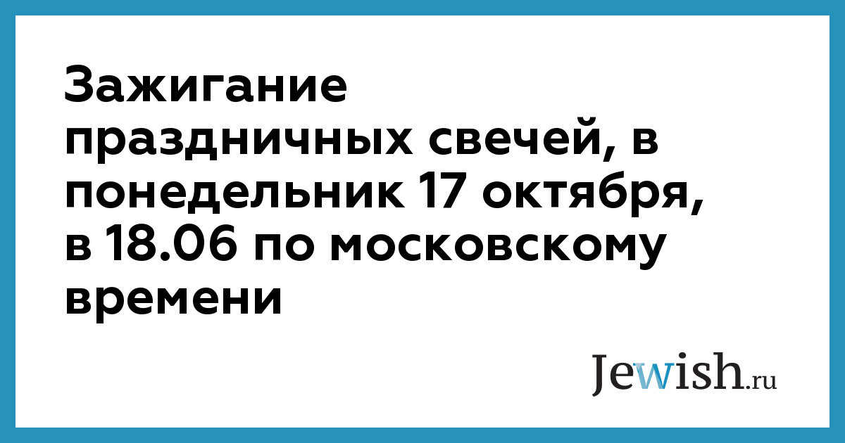 Зажигание праздничных свечей, в понедельник 17 октября, в 18.06 по московскому времени