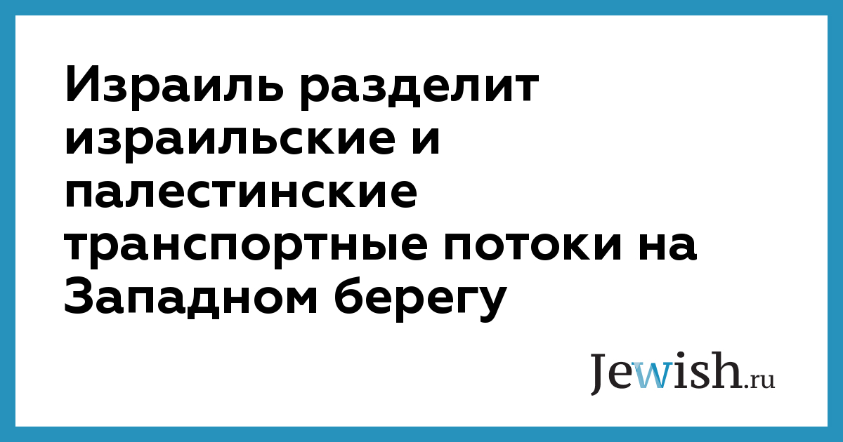 Израиль планирует разделить израильские и палестинские транспортные потоки на Западном берегу реки Иордан, сообщило в среду израильское радио. Причиной такого шага служит вылазка, предпринятая на днях палестинскими боевиками против израильтян.