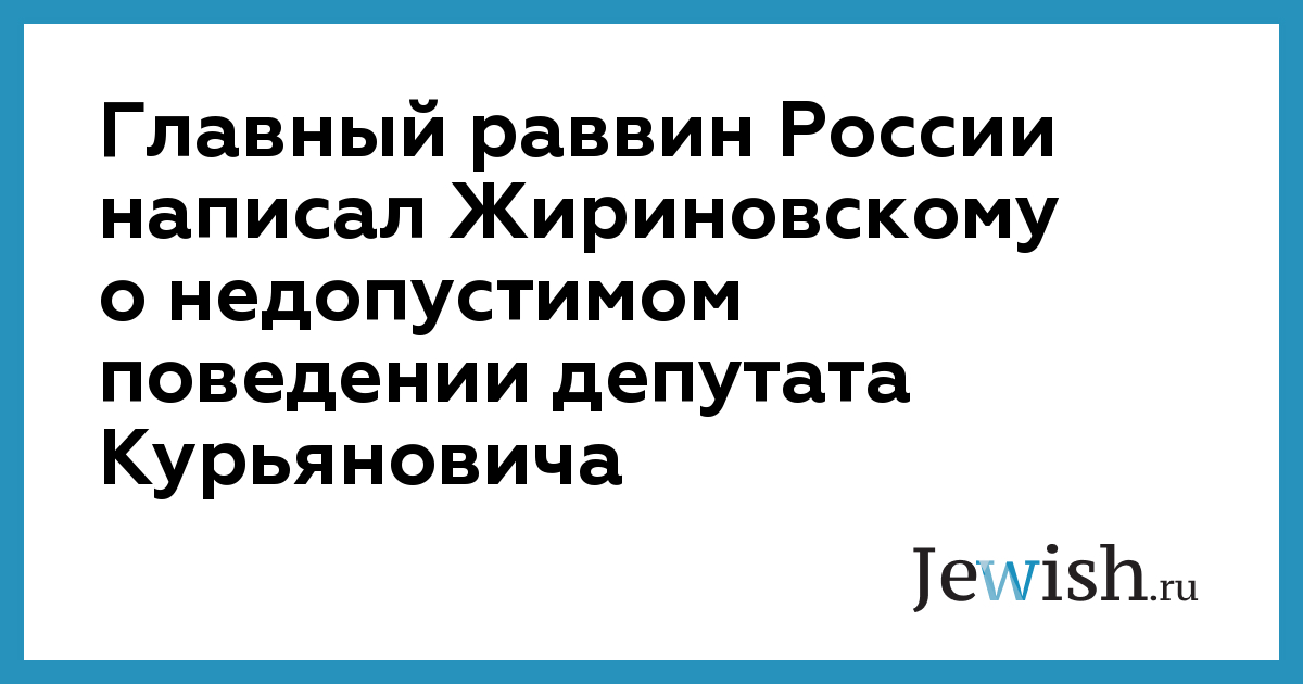 Главный раввин России написал Жириновскому о недопустимом поведении депутата Курьяновича