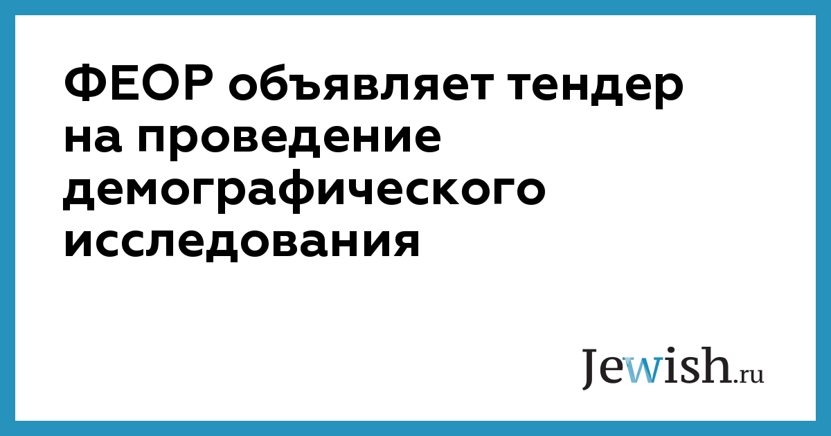 Федерация еврейских общин России объявляет тендер на проведение демографического и социологического исследования с целью создания базы данных "Евреи Российской Федерации". Целью исследования является увеличение Базы данных ФЕОР и получение дополнительных социологических сведений, касающихся еврейского населения страны.