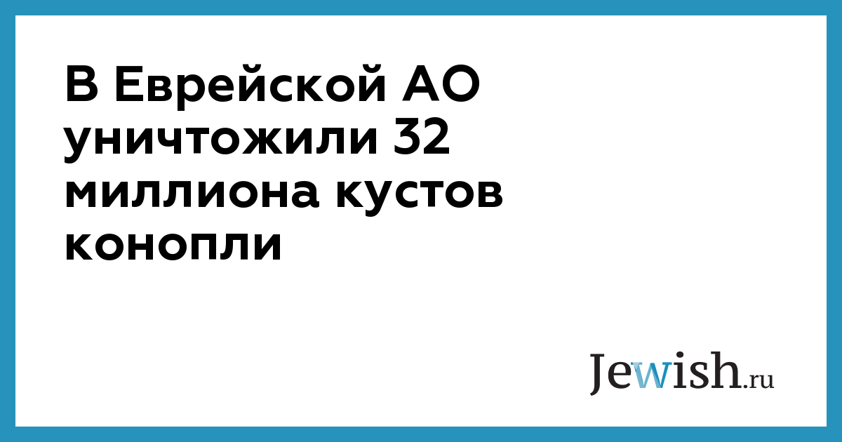Сотрудники службы наркоконтроля по Еврейской автономной области подвели предварительные итоги операции "Конопля — 2005", которая проводится на территории автономии с 20 мая. Как сообщил 27 октября сотрудник отдела по контролю за легальным оборотом наркотиков Сергей Мордвинов, всего полицейскими было уничтожено более 113 гектаров дикорастущей конопли. По специальной методике было определено и количество конопляных кустов, произраставших на этой территории. Их оказалось чуть более 32 миллионов. Общий вес уничтоженного дурмана составил 5 382 тонны.