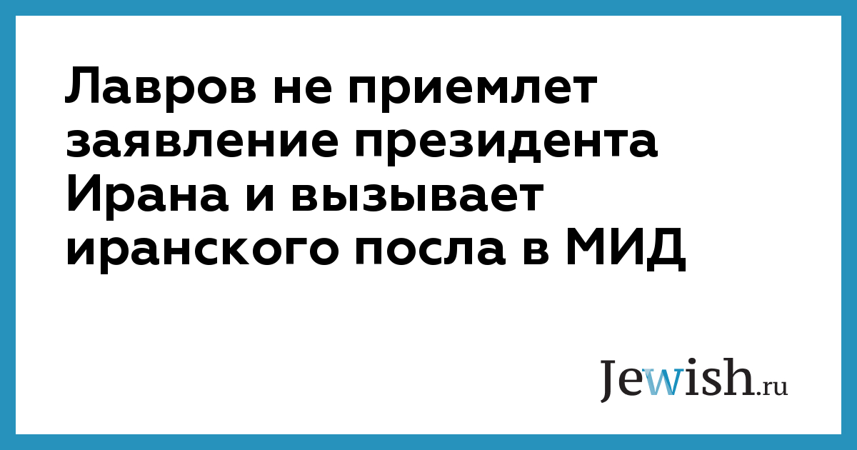 Лавров не приемлет заявление президента Ирана и вызывает иранского посла в МИД