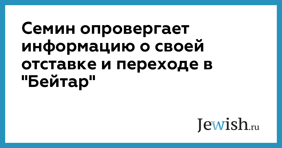 Семин опровергает информацию о своей отставке и переходе в "Бейтар"