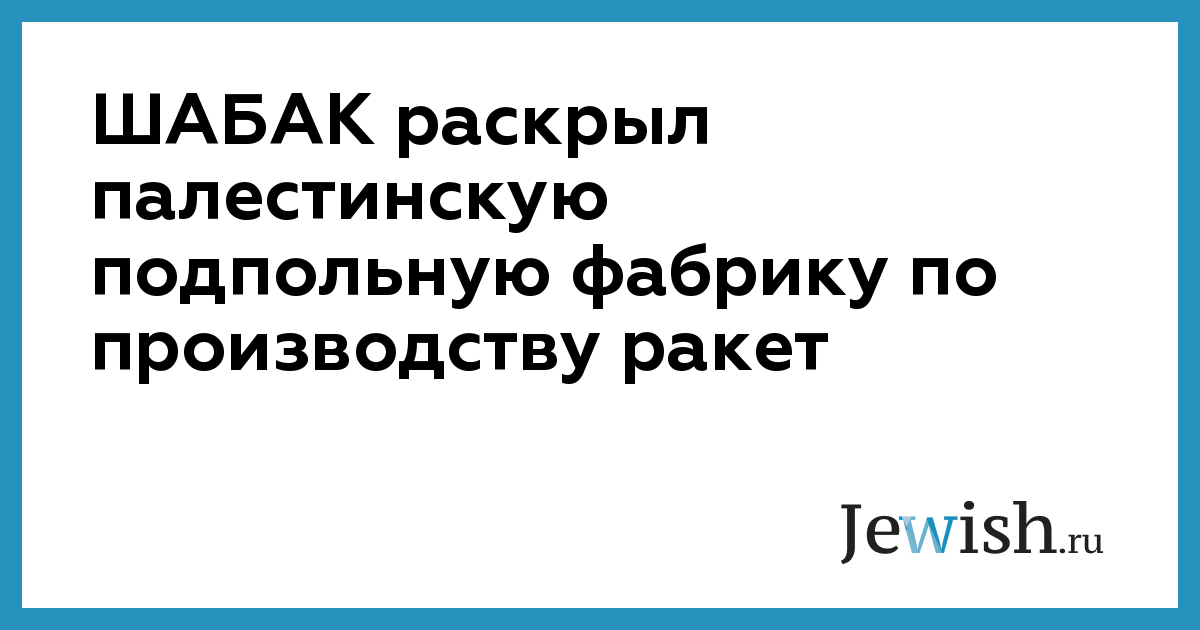 ШАБАК раскрыл палестинскую подпольную фабрику по производству ракет