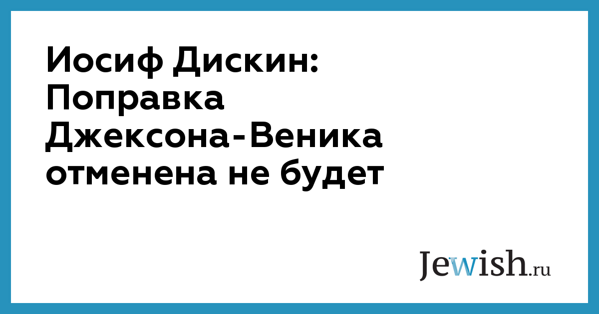 Иосиф Дискин: Поправка Джексона-Веника отменена не будет