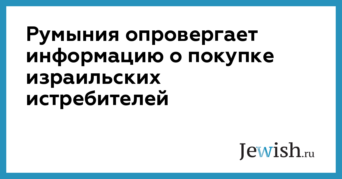 Премьер-министр Румынии Кэлин Попеску-Тэричану отверг появившиеся в ряде израильских СМИ сообщения о том, что его страна ведет переговоры о закупке в Израиле самолетов F-16. По словам главы румынского правительства, лично он ничего не знает о подобной сделке.