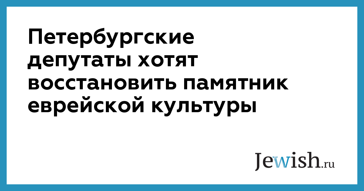 Петербургские депутаты хотят восстановить памятник еврейской культуры