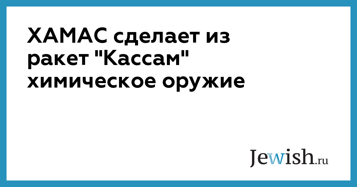Cогласно перехваченным армией инструкциям по получению хлорного ("горчичного") газа боевые мастерские Хамаса переходят на изготовление ракет "кассам" с боевым наполнением.