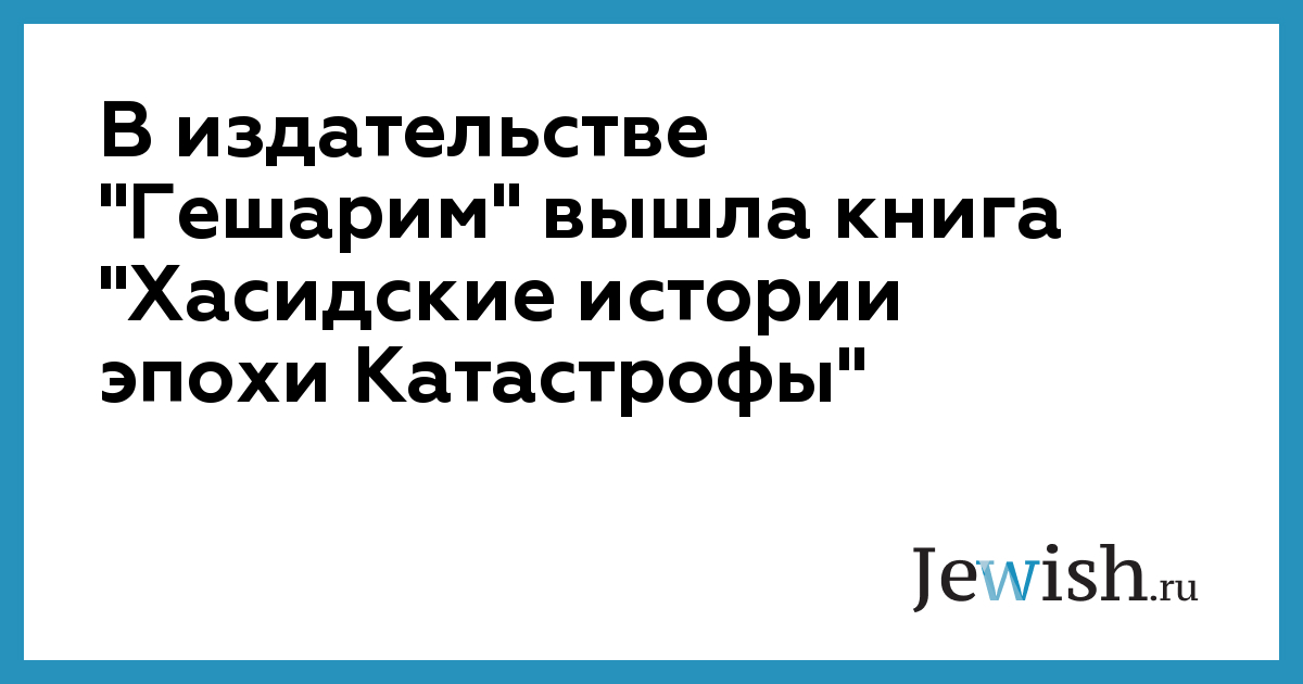В издательстве "Гешарим" вышла книга "Хасидские истории эпохи Катастрофы"