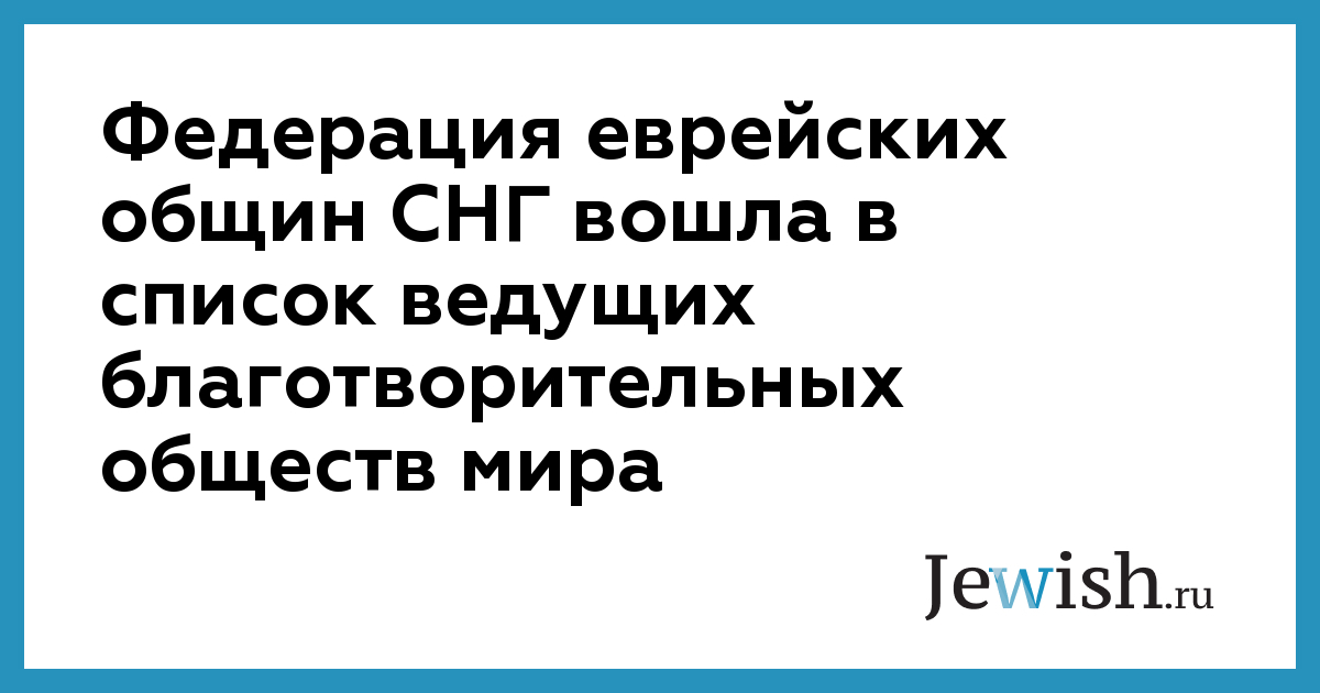 Федерация еврейских общин СНГ вошла в список ведущих благотворительных обществ мира