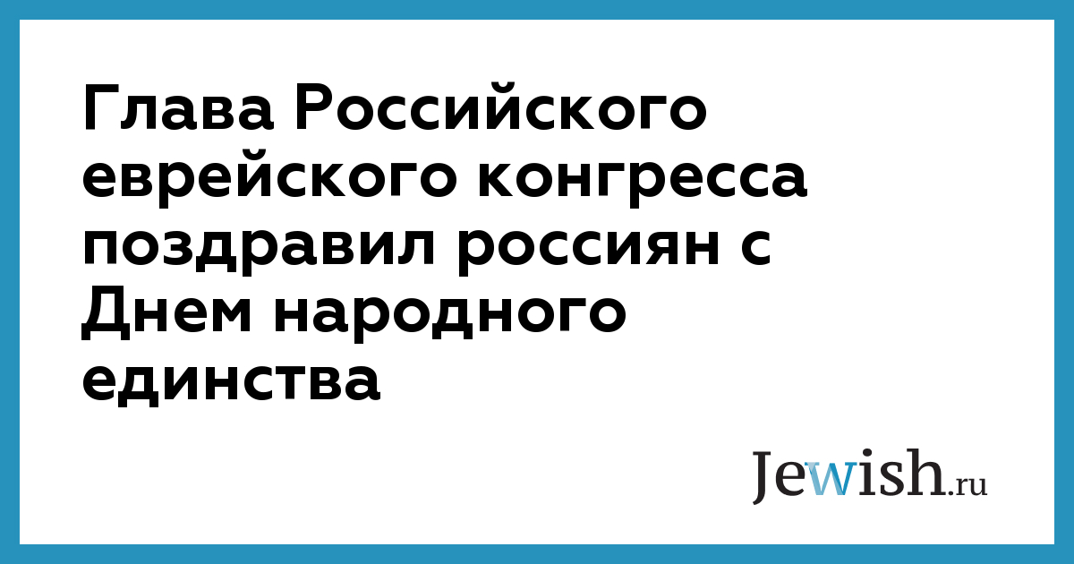"От имени Российского еврейского конгресса поздравляю всех россиян с общенациональным праздником — Днем народного единства.