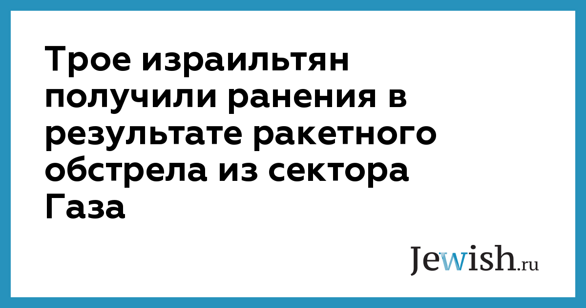 Трое израильтян получили ранения в результате ракетного обстрела из сектора Газа