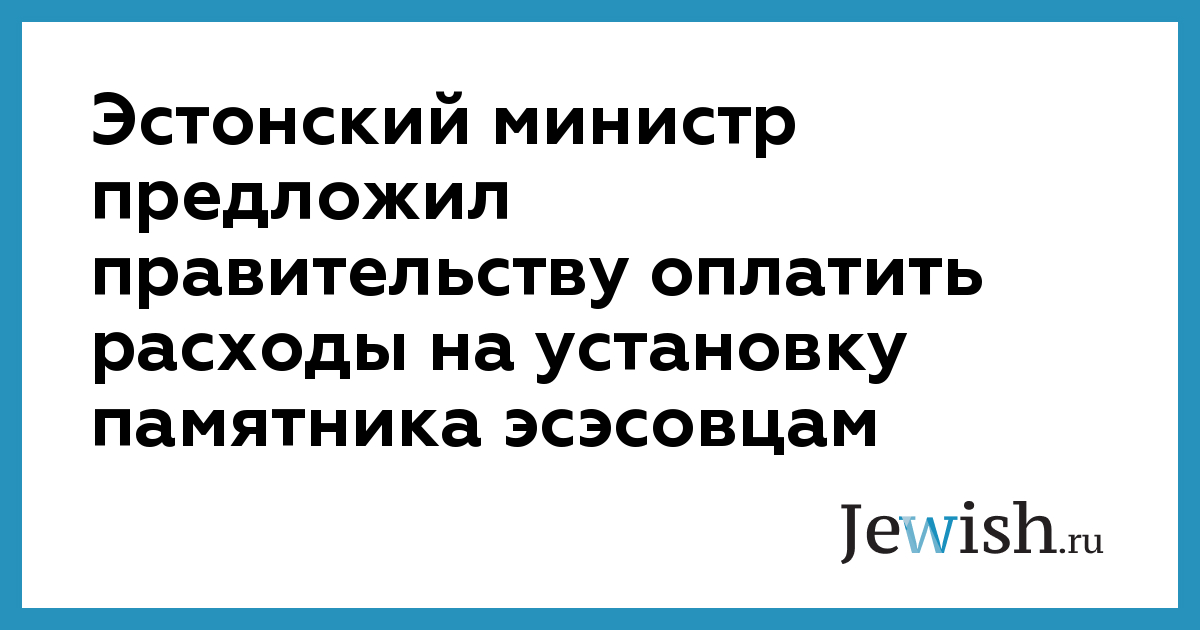 Министр по делам регионов Эстонии Яан Еунапуу внес на рассмотрение правительства предложение покрыть расходы на установку памятника эстонским эсэсовцам.