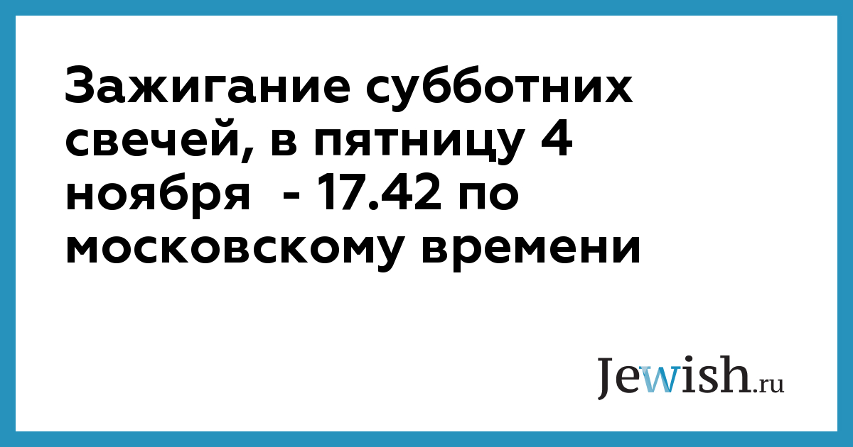 Зажигание субботних свечей, в пятницу 4 ноября — 17.42 по московскому времени