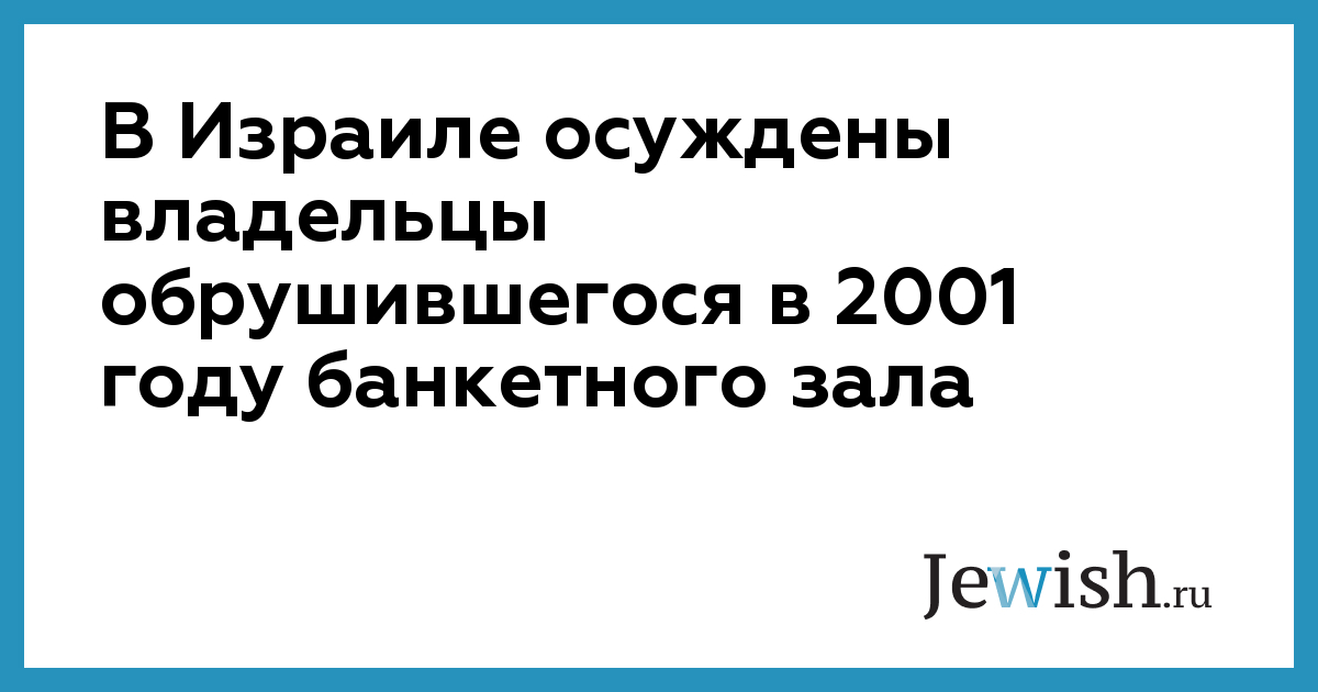 В Израиле двое владельцев банкетного зала в воскресенье были признаны виновными в причинении смерти по халатности и приговорены к 30 месяцам лишения свободы.