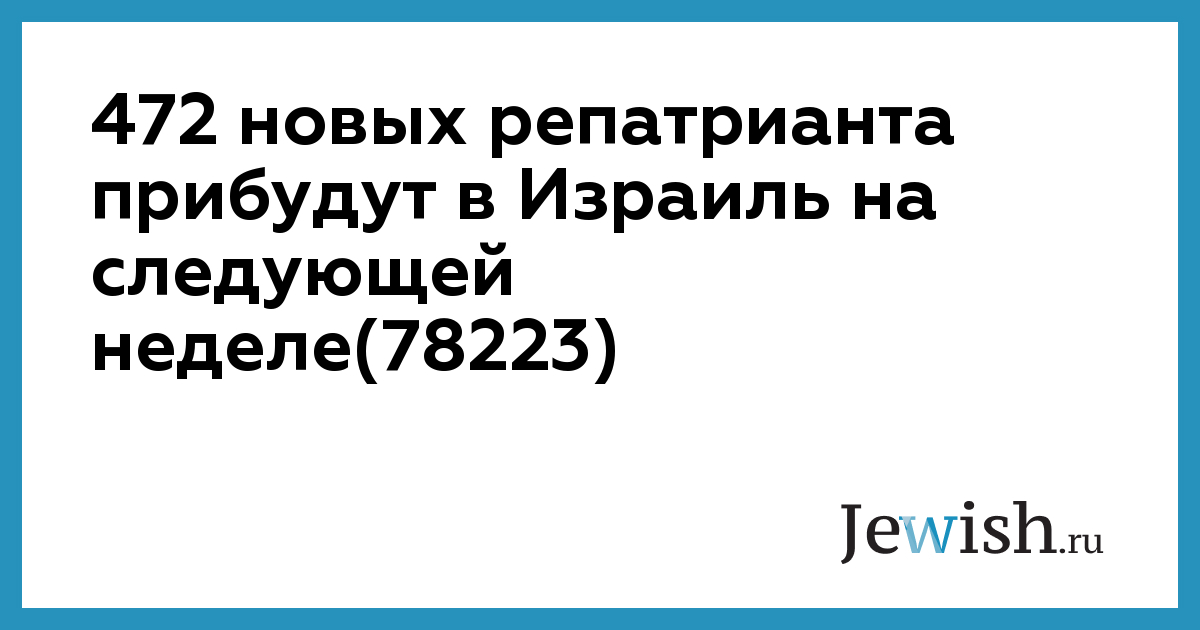 По сообщению Еврейского агентства, на этой неделе в Израиль прибудут 472 новых репатрианта. Из стран бывшего СССР прибывают 319 новых граждан страны, в том числе 160 из России и 70 из Украины.
