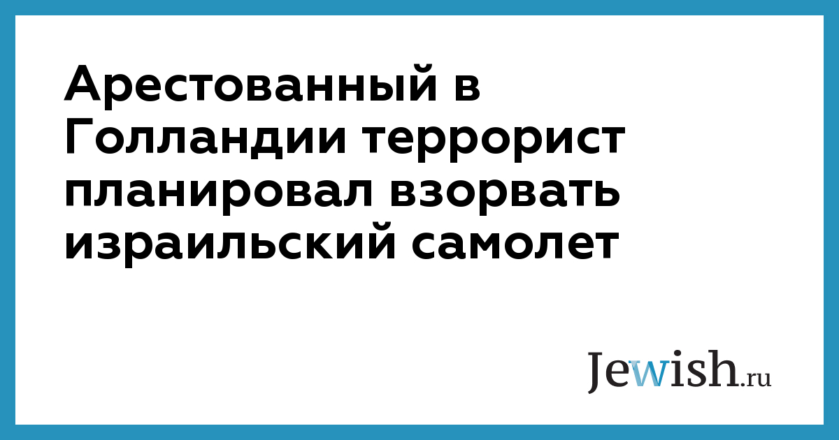 Арестованный в Голландии террорист планировал взорвать израильский самолет