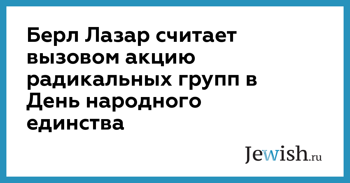 Берл Лазар считает вызовом акцию радикальных групп в День народного единства