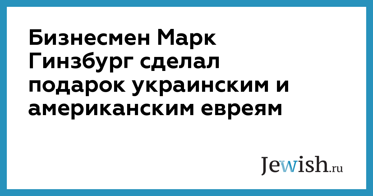 Бизнесмен Марк Гинзбург сделал подарок украинским и американским евреям